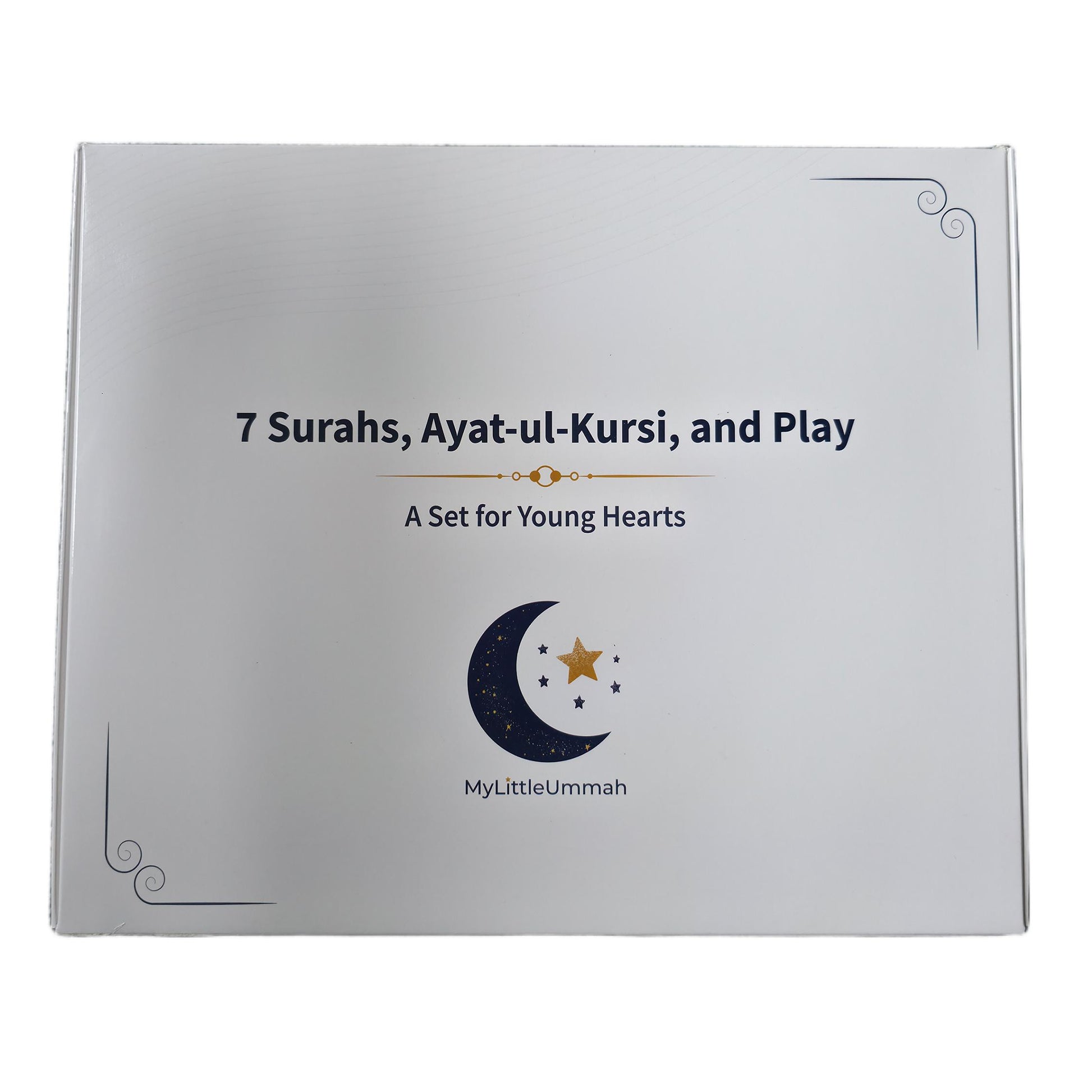 Embark on a spiritual journey with 7 Surahs, Ayat-ul-Kursi, and Play: A Set for Young Hearts—a beautifully crafted collection designed to introduce young believers to the profound wisdom of the Quran.