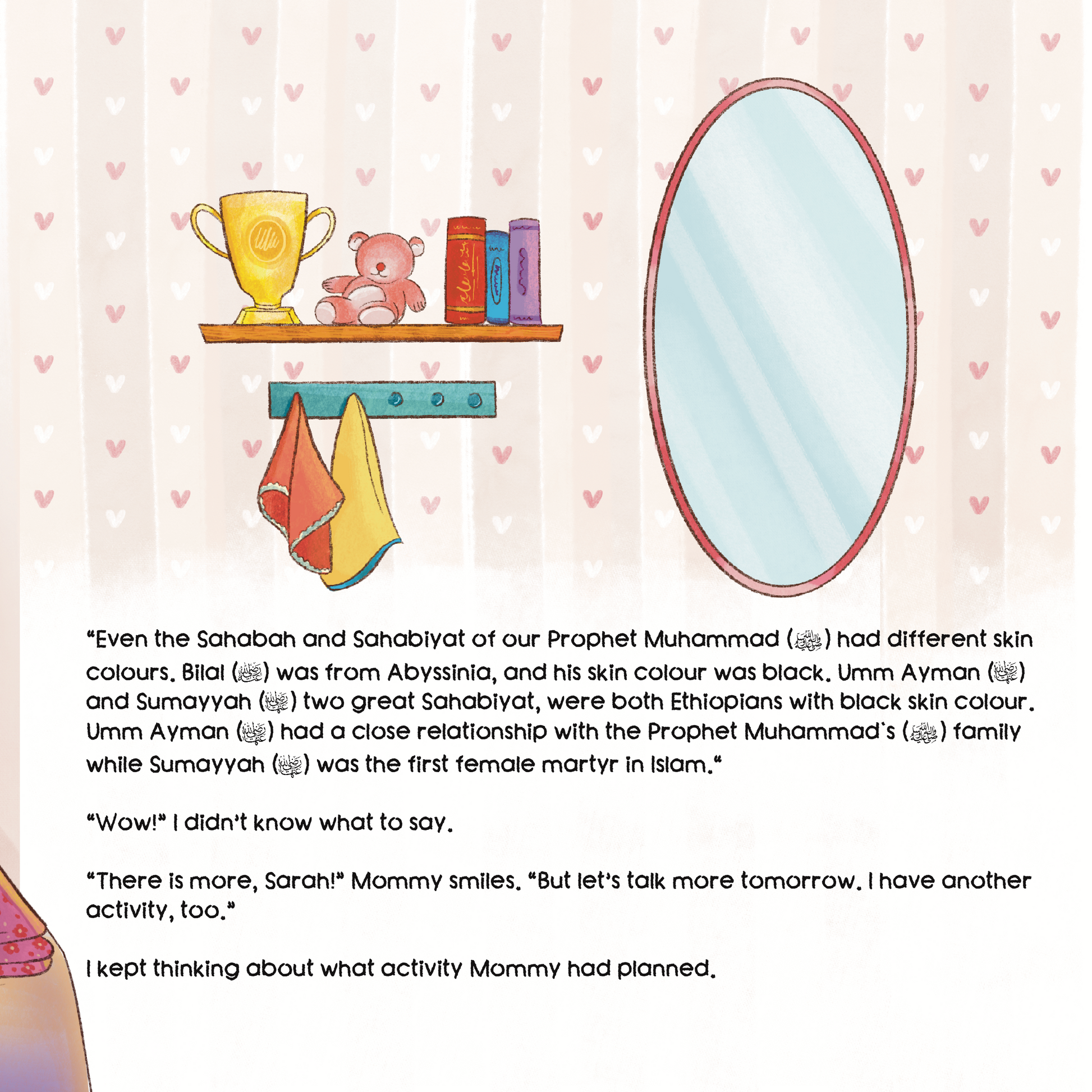 Join Sarah as she tries to find out more about her skin colour. In the process, she learns about Allah’s marvellous creation and the different forms He has given to it."