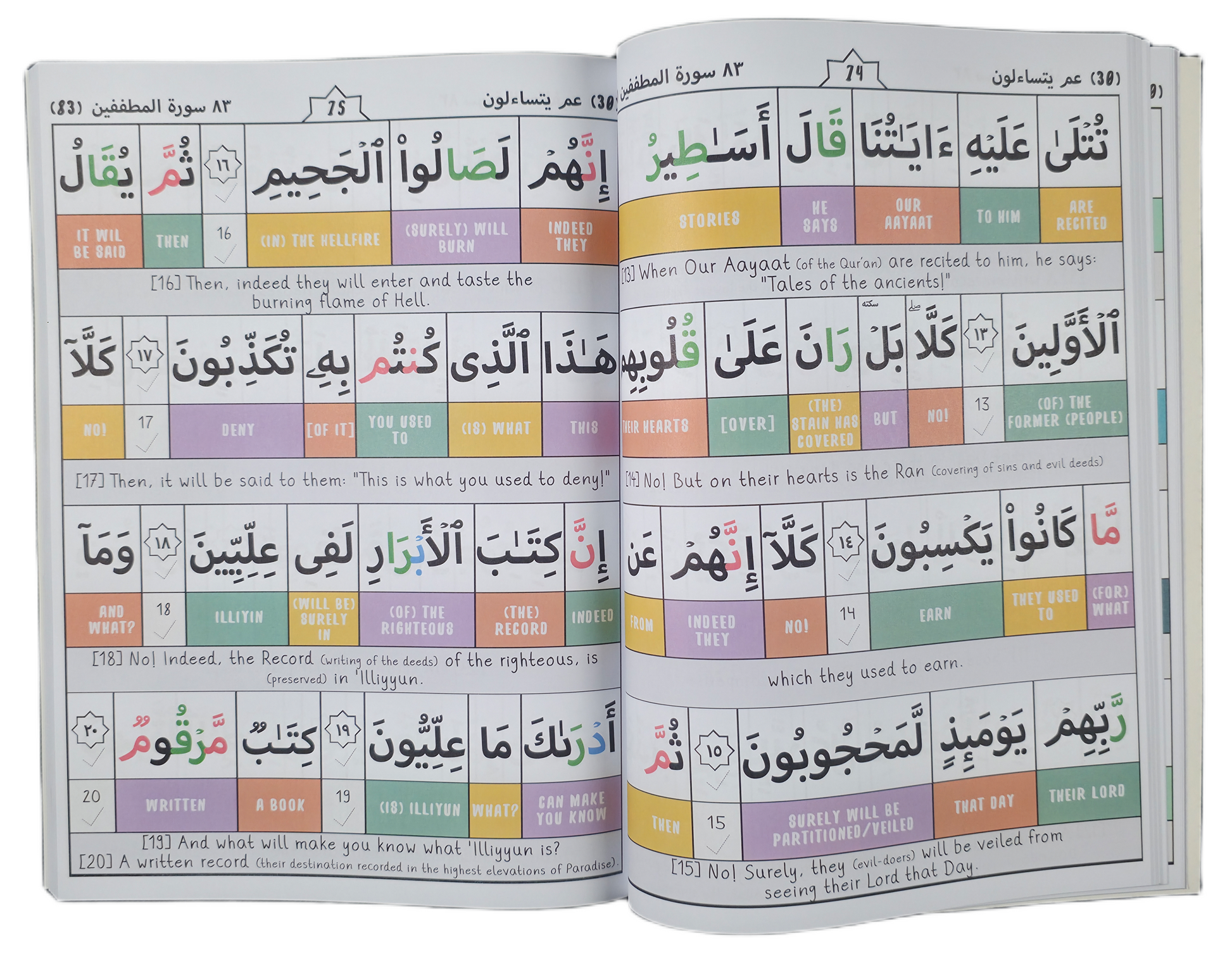 Word-for-Word Meaning in Colour – Understand the Quran directly and strengthen your Arabic vocabulary.