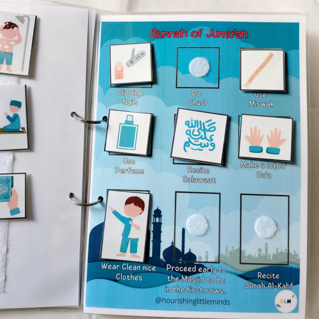 This interactive Islamic activity binder helps children build a stronger connection to their faith. The colorful illustration and easy-to-understand text make learning about Islam easier. This Islamic binder sharpens their memory and increases their knowledge about Islam.